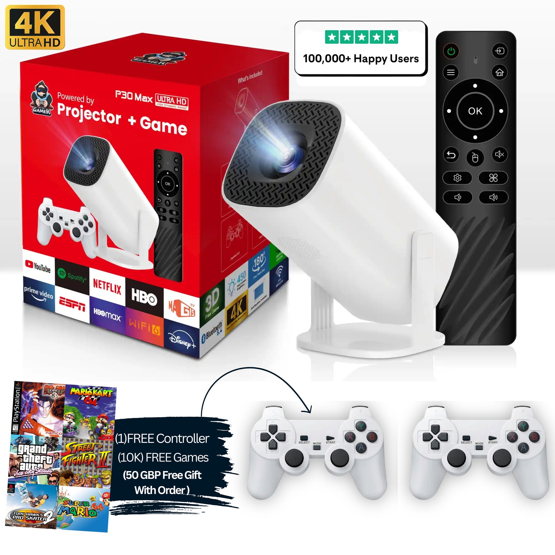 With Retro Visionᵀᴹ, you don’t need cables or setups,just plug it in and enjoy. Stream your favorite platforms, play thousands of retro games, and turn any wall into a big screen full of color and fun.